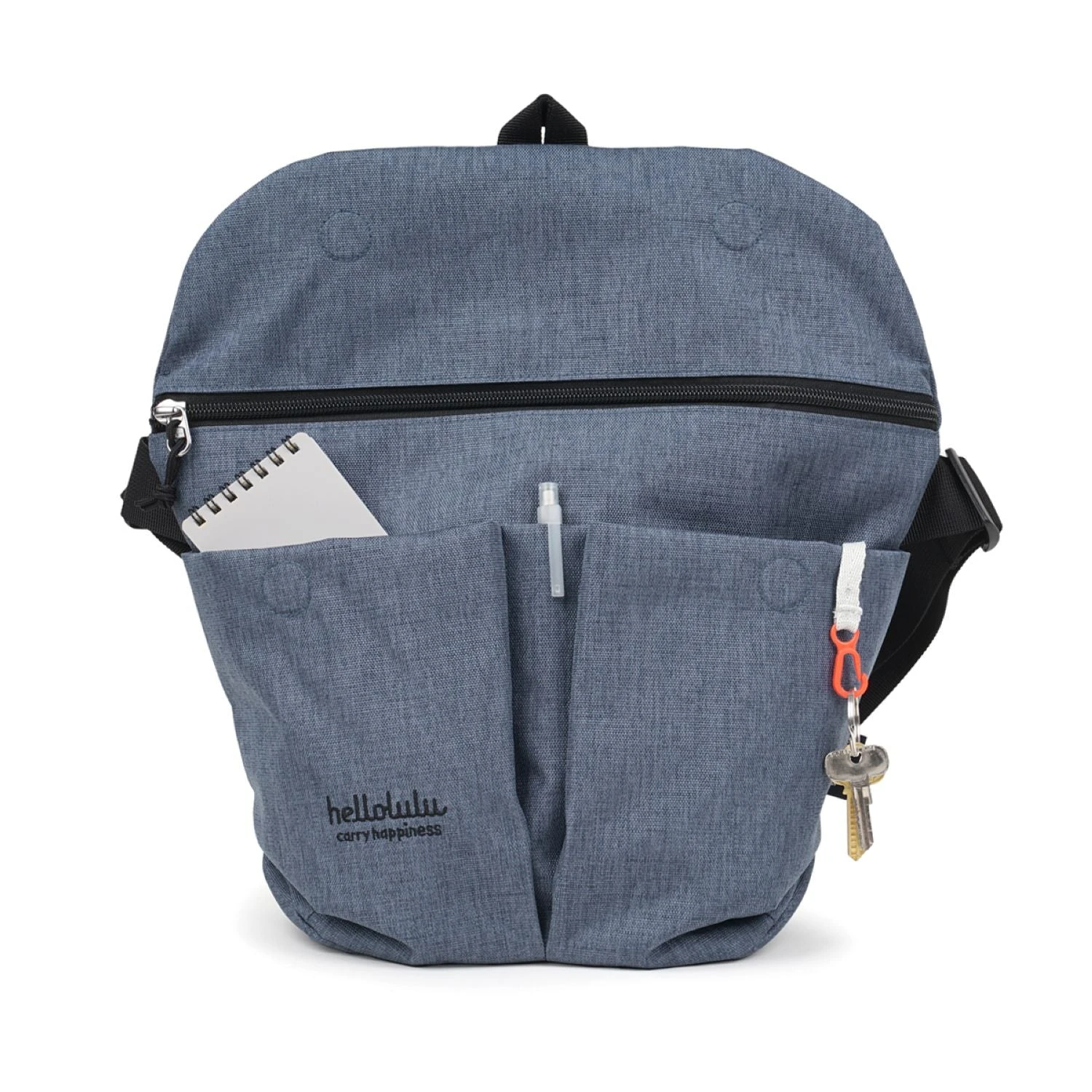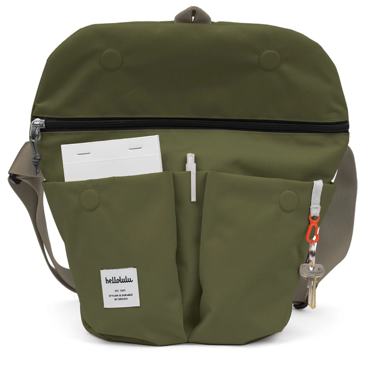 • Quick access front pockets with key clip and pen slot