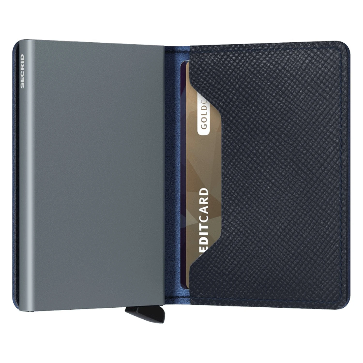 Each Slimwallet has the aluminum Cardprotector inside. The patented mechanism provides a simple and fast access to your cards. Push the lever and the cards slide out smoothly, ready for immediate use. The strong case protects the cards against bending, breaking and unauthorised wireless scanning.